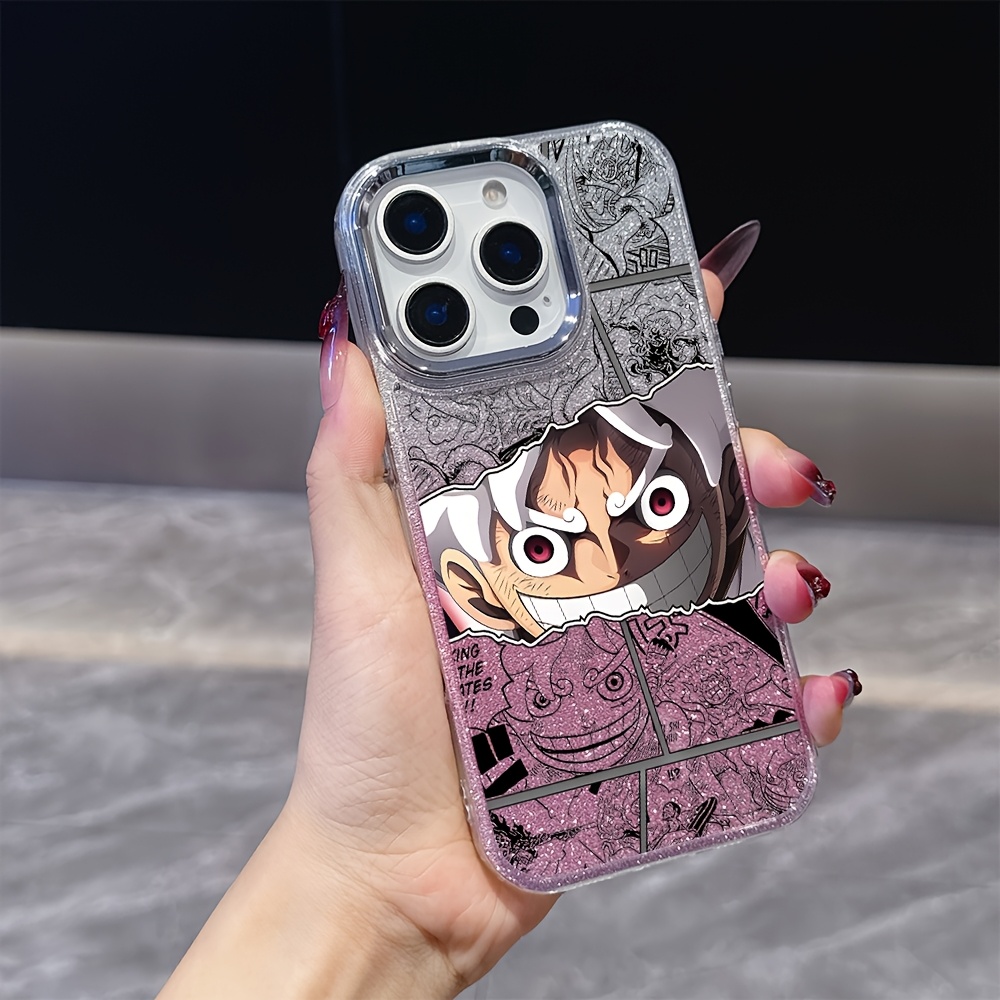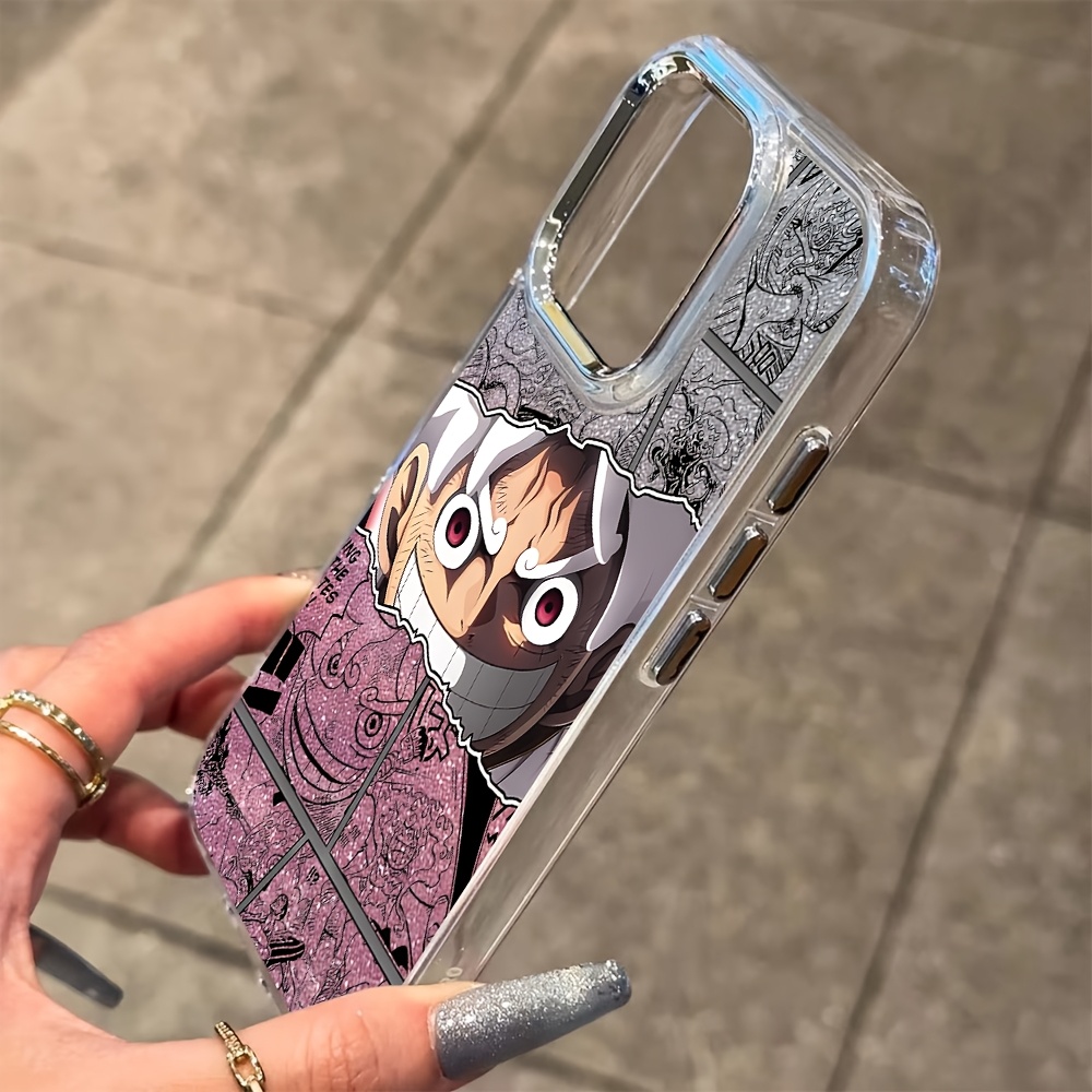 Home One Piece Accessories Phone Cases Anime One Piece Luffy Gear 5 Design Phone Case Compatible with for iPhone 17 16e 16 15 14 13 12 11 Pro Max Air X XR XSMAX 8 7 Plus, Metal Silvery Lens Frame with Transparent Soft Back Cover