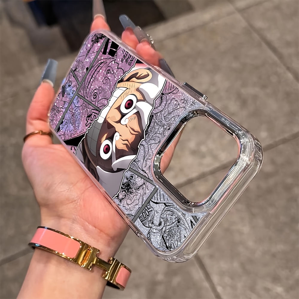 Anime One Piece Luffy Gear 5 Design Phone Case Compatible with for iPhone 17 16e 16 15 14 13 12 11 Pro Max Air X XR XSMAX 8 7 Plus, Metal Silvery Lens Frame with Transparent Soft Back Cover