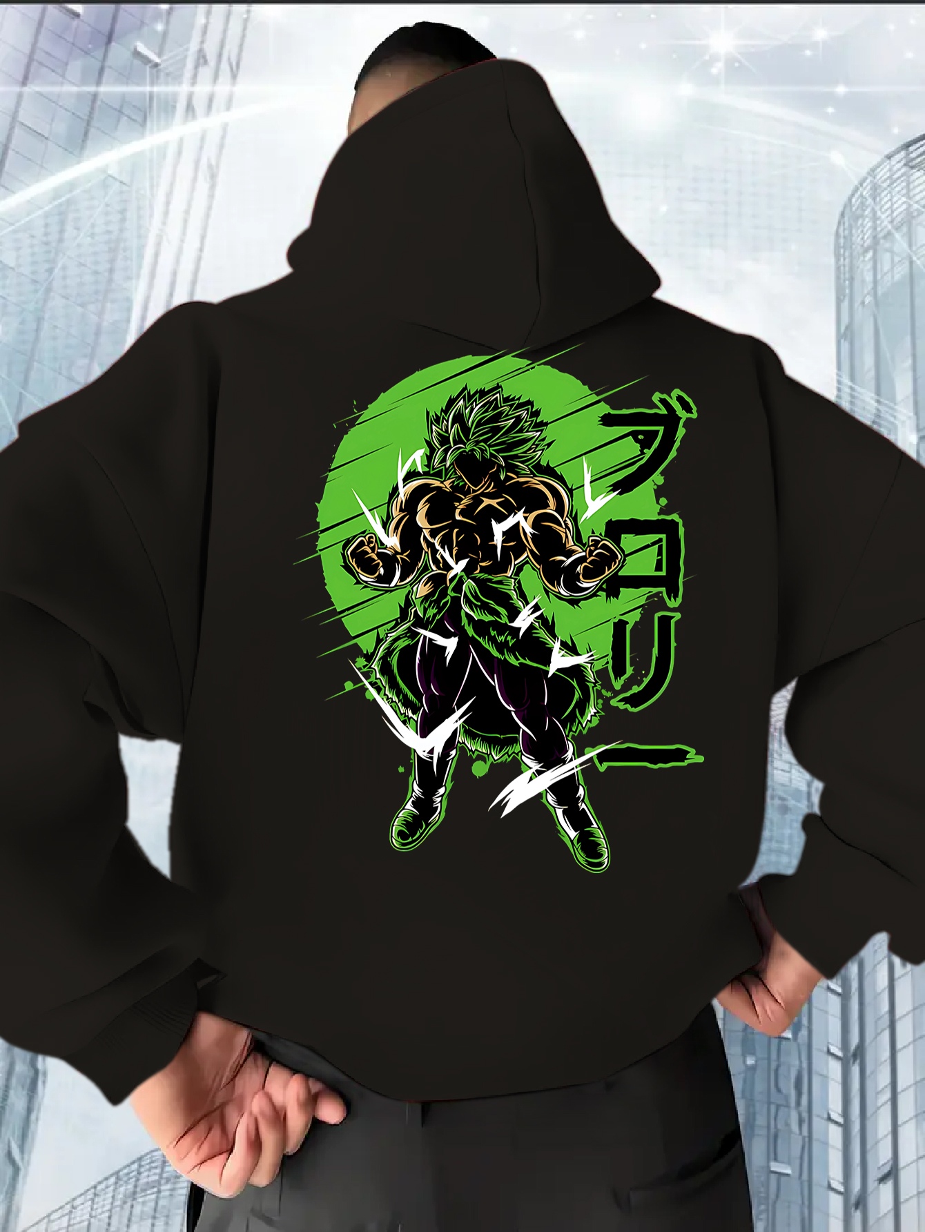 Men’s Dragon Z Saiyan Graphic Hooded Sweatshirt – Loose Fit Casual Pullover with Super Saiyan Design, Anime Print, Perfect Gift for Fans, Fan Merchandise, Streetwear Fashion, Streetwear Style, Streetwear Lovers, Everyday Outfit, Long Sleeve Design